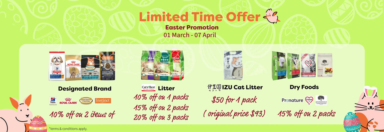 Q-Pets has launched a limited offer for Easter, carefully selecting a series of pet products for pets. From food, cat litter, diaper pads to treats, Q-Pets has a wide range of products. Come to Q-Pets.com to choose for your pet!