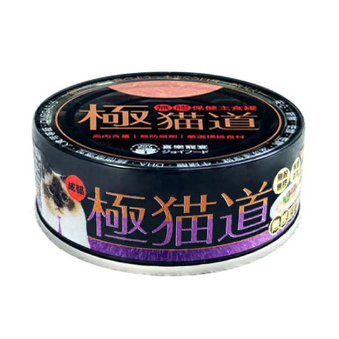 極貓道無膠保健主食罐符合美國AAFCO全營養標準,採用人食用新鮮生魚片等級魚肉及嚴選雞肉和牛肉等食材製成 ;